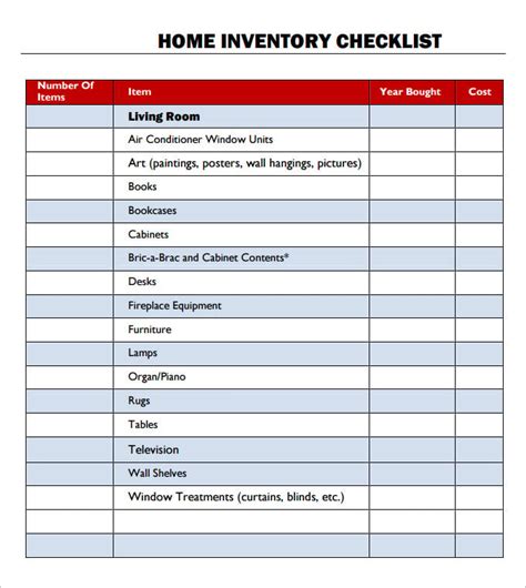 Home Inventory Templates 10+ Free Printable Excel, Word & PDF Formats